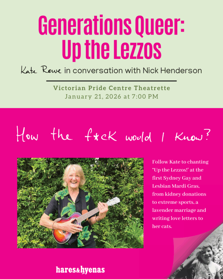 Nick Henderson, historian, researcher and collections manager at the Australian Queer Archives will host a discussion with Kate on the personal and political changes in lesbian life since that charged night in 1978.