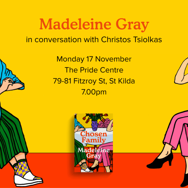 To celebrate the release of Madeleine Gray’s novel Chosen Family Madeline will be chatting with Christos Tsiolkas about being weird, friendships and do we really know those we are closest to.