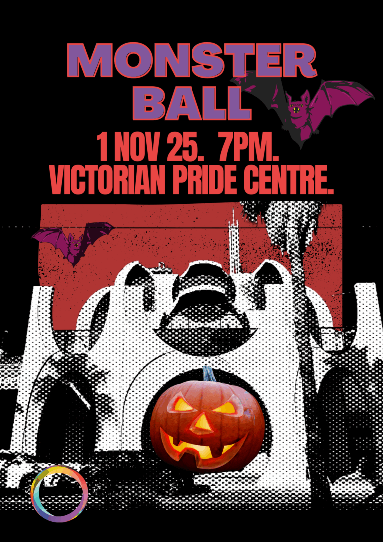 Come join us at the Victorian Pride Centre for a spooktacular evening on November 1, 2025 at 7:00 PM (Australia/Melbourne time). Get ready for a night of frights, delights, gay ghouls and everything in between!
