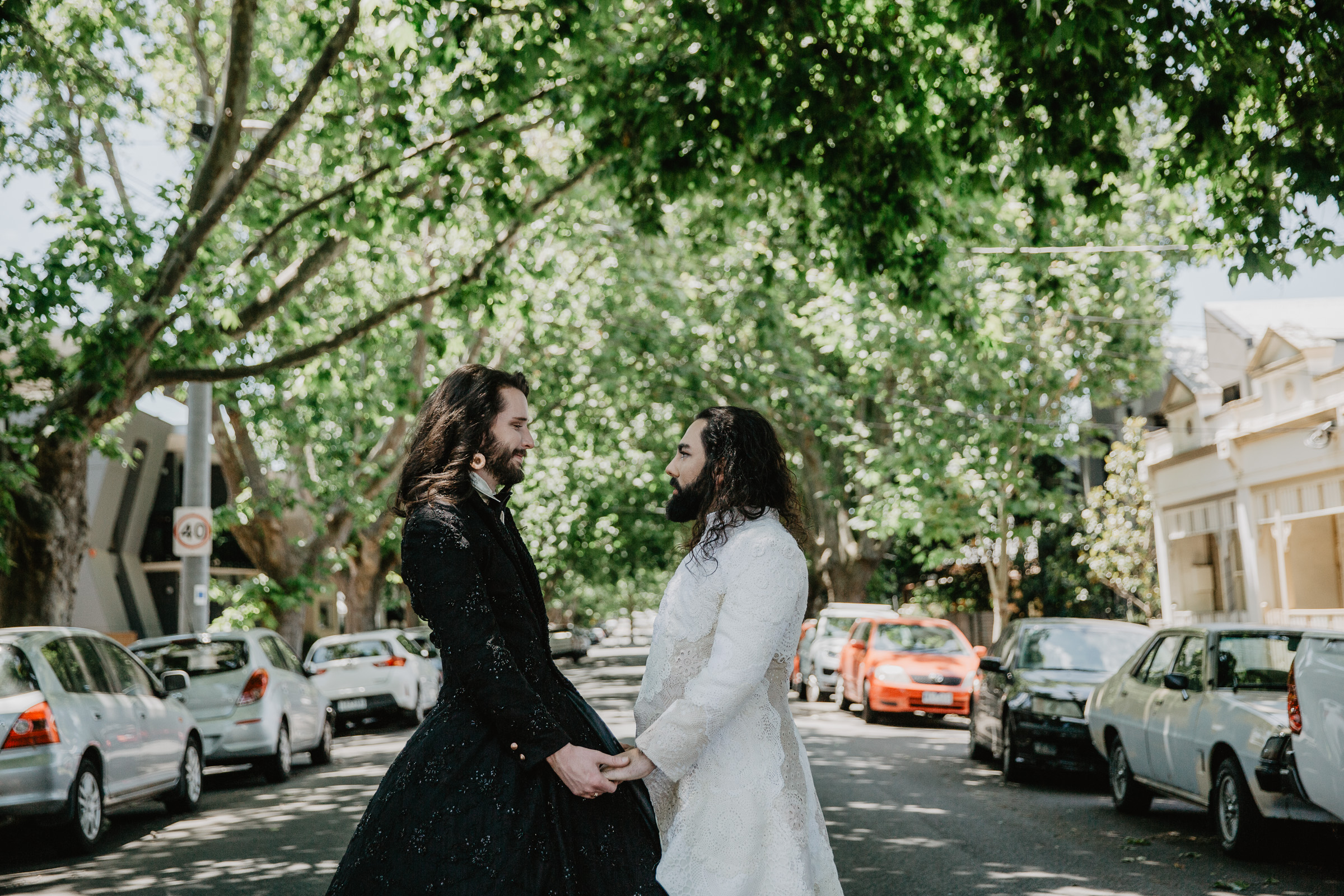The two of us were married in December of 2022. From the day we were engaged, we were determined to put on an event that was handcrafted, that moved people, and that reveled in camp and gaiety. We built these objects, garments and jewellery pieces to symbolically bring together and celebrate our queer and cultural identities. We hope to share our love and our creations with the Melbourne queer community.